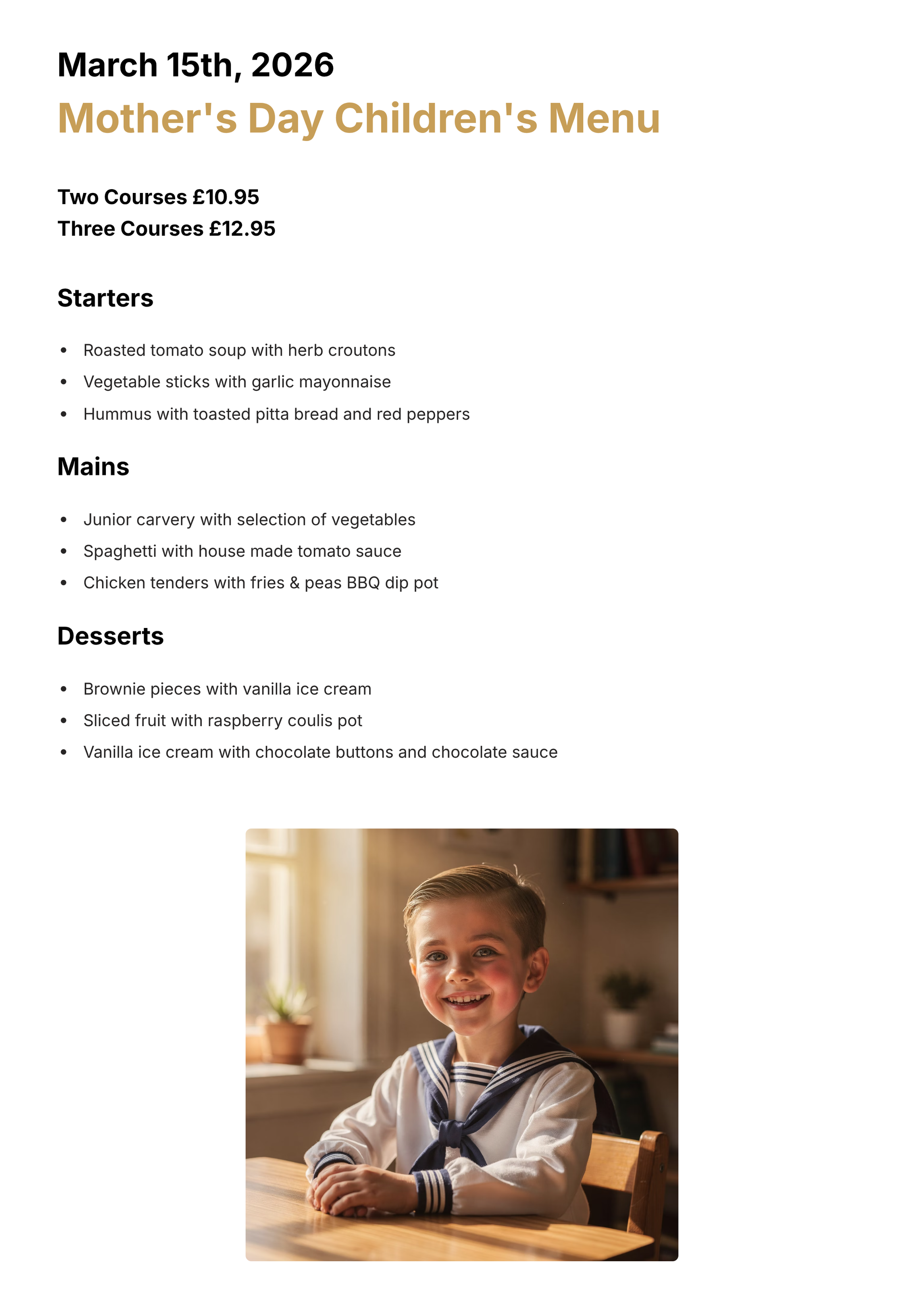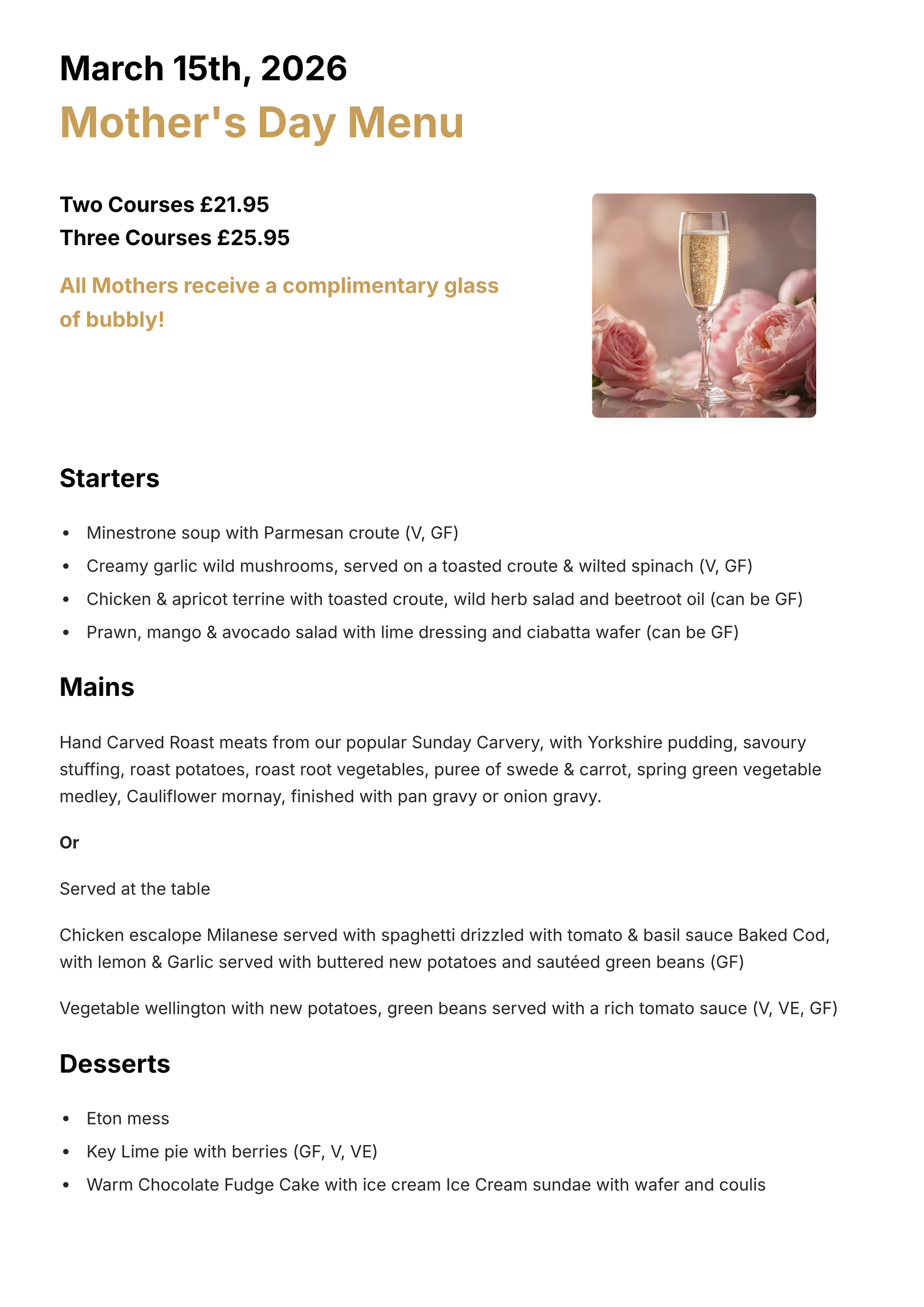 Join us for a classic Sunday lunch this Mother's Day.